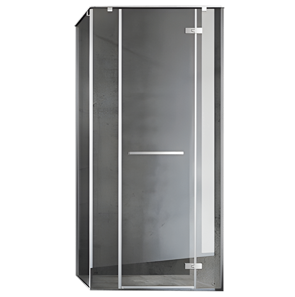 Discover the Forestland glass shower enclosure—a sleek, angular corner design featuring crystal-clear low iron glass and a single outward-swinging door. With subtly integrated hardware, it offers a modern, space-saving solution perfect for contemporary bathrooms. Enjoy ultra-clear transparency with no green tint for a clean, airy feel.